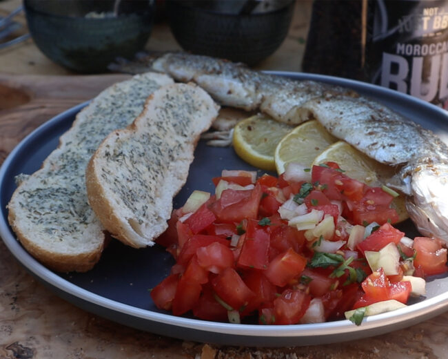 A whole fish on the barbecue can sometimes be a little intimidating. But don’t worry, it’s a lot less exciting than it looks. In fact, it’s actually quite easy. Rainbowtrout is a fish on the smaller side, but that doesn’t detract from its flavour. The cilantro from the rub goes well with the fresh cilantro…